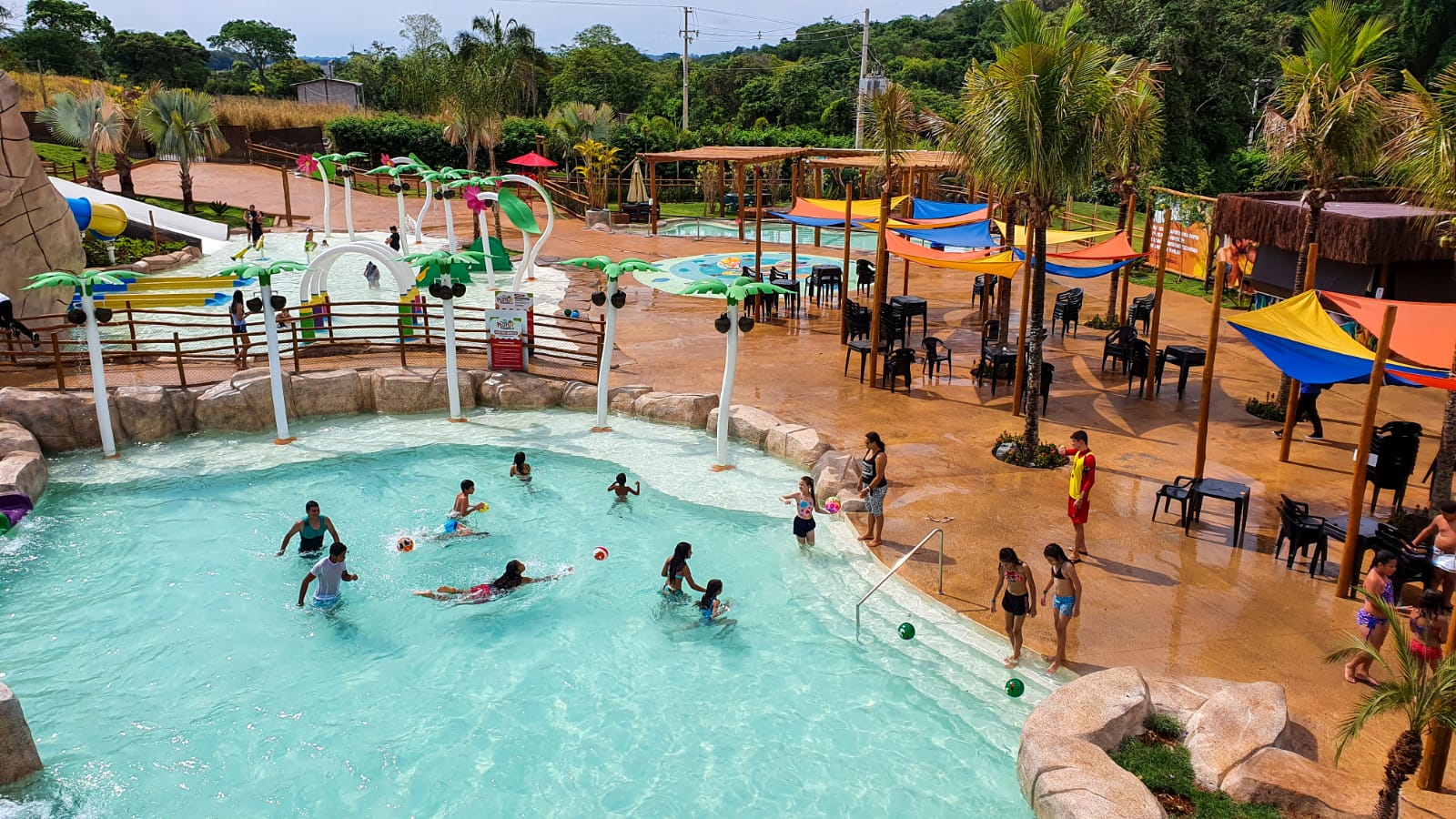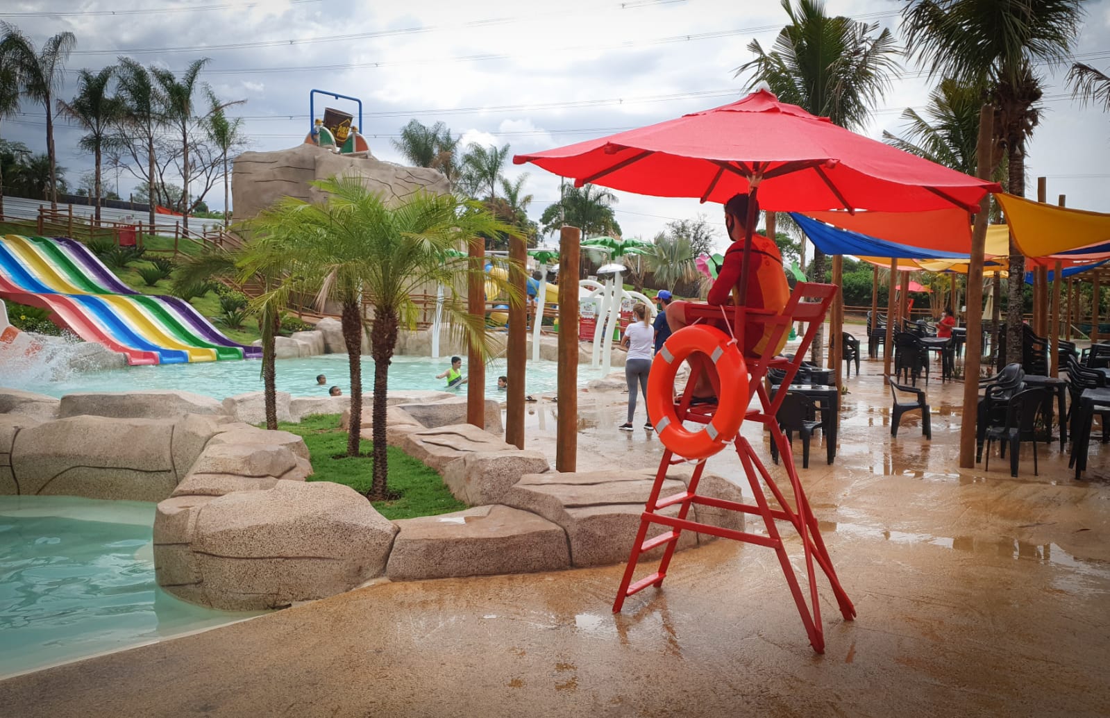 Uma chuva rápida que caiu no meio da tarde não atrapalhou a animação, ao contrário. As piscinas ficaram cheias de crianças.