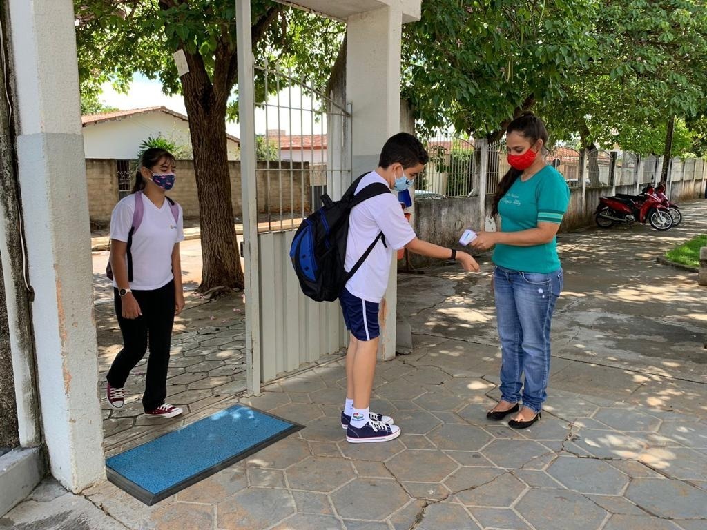 Além de conferir a limitação de 50% da capacidade de alunos exigida nesse retorno ao ensino presencial, as equipes observaram o cumprimento ao protocolo de biossegurança.