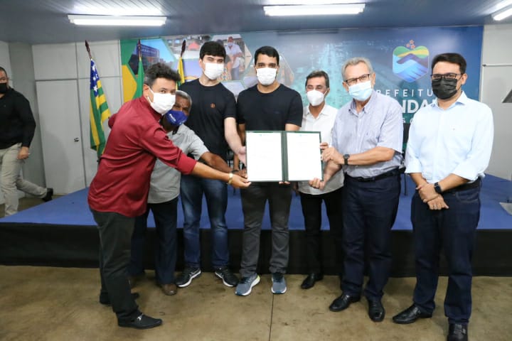 O prefeito Marden Júnior e o diretor presidente das Faculdades Aphonsiano, Marcos Antônio de Queiróz, assinaram o termo junto com os secretários municipais da Indústria e Comércio, Gustavo Queiróz, e da Casa Civil, Lhinicker D’Orázio, tendo como testemunhas o deputado estadual Francisco Júnior, em visita a Trindade nesta quarta, mais os vereadores Nélio Fortunato e Baiano do Esporte.