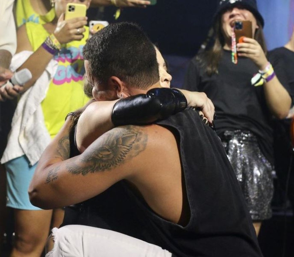 O momento do encontro de Gkay e Carlinhos Maia aconteceu na madrugada desta quarta-feira (8), durante o show do cantor Léo Santana. O alagoano subiu no palco com um buquê de flores e deu um longo abraço na anfitriã, que chorou. A reconciliação foi oficializada três anos após os dois deixarem de se falar, por conta de divergências.
