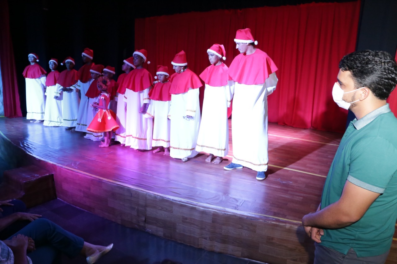 Opereta de Natal reuniu crianças do Cras Laguna no palco do Grupo Desencanto com presença do prefeito