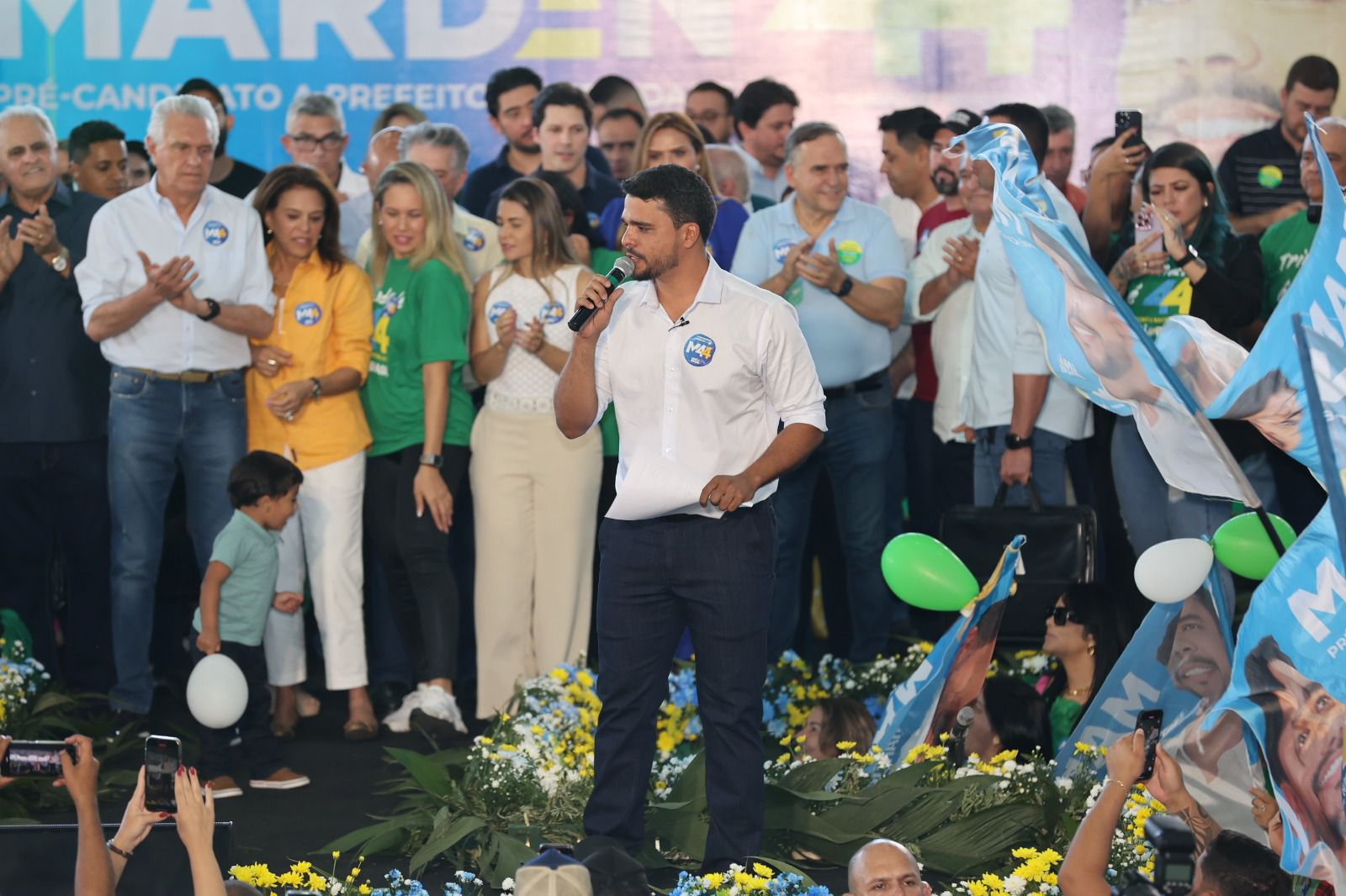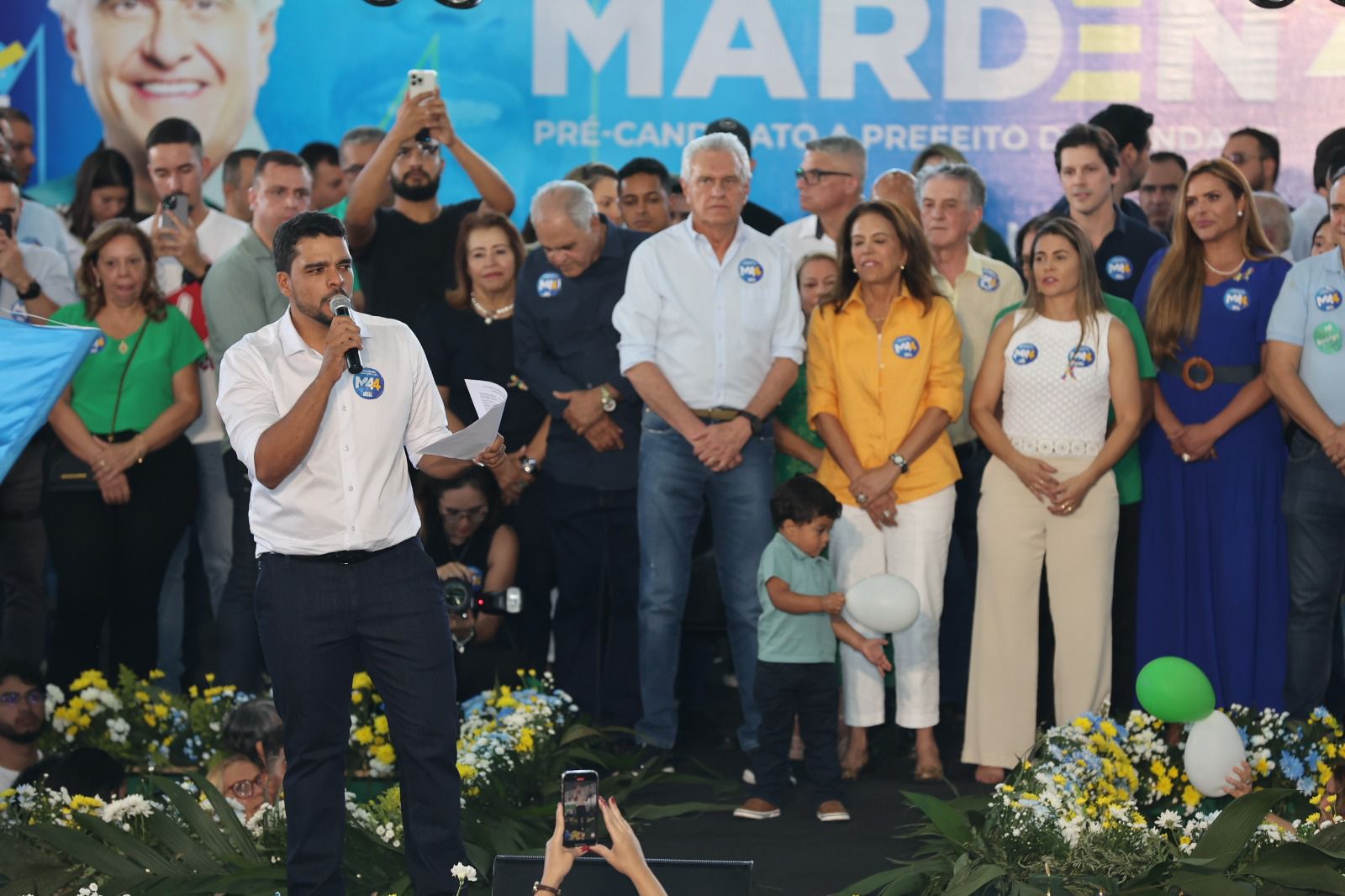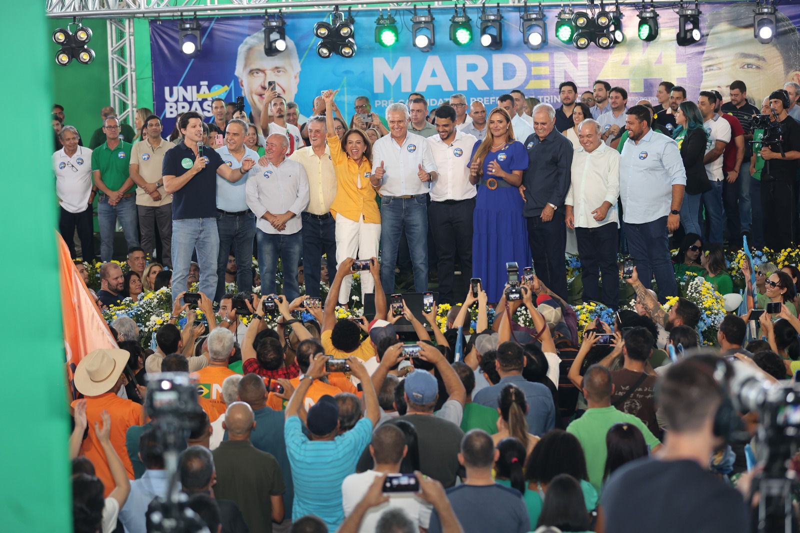 Na tarde deste sábado (03/08), o Prefeito Marden Júnior (União Brasil) foi escolhido como candidato à reeleição em Trindade, durante a convenção da base aliada realizada no Ginásio de Esportes Amando Grecco. O evento reuniu 5 mil pessoas.