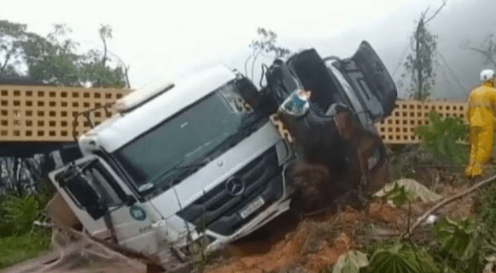 Bombeiros buscam desaparecidos após deslizamento arrastar 10 carros e 5 caminhões na BR-376