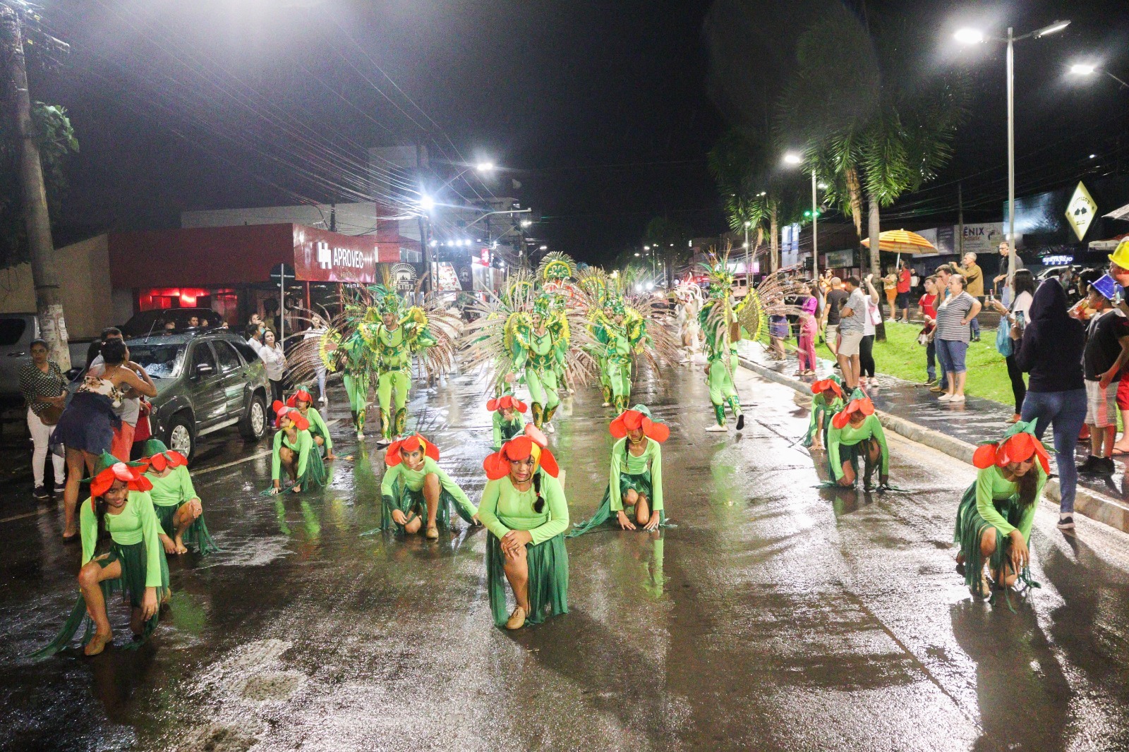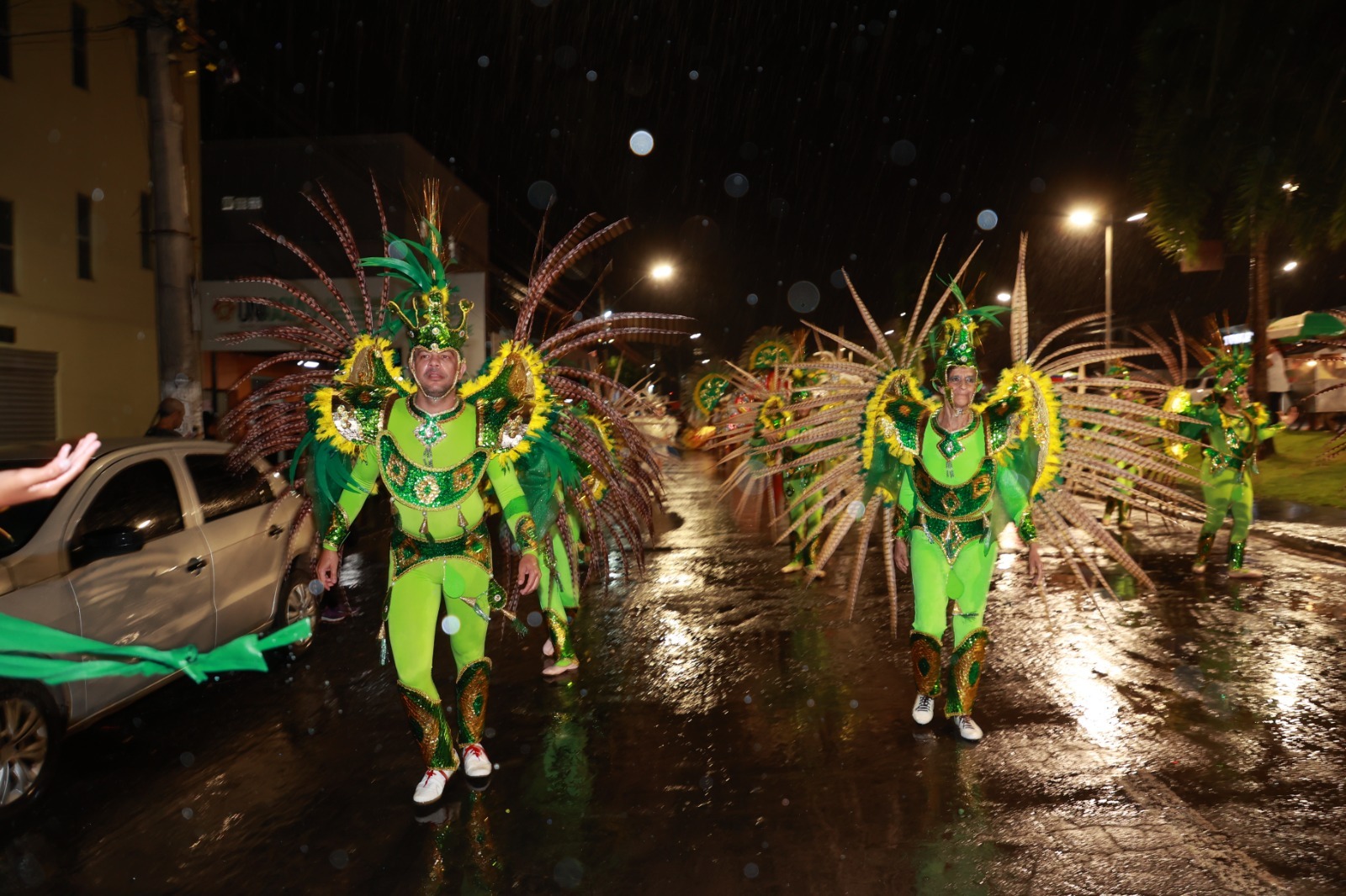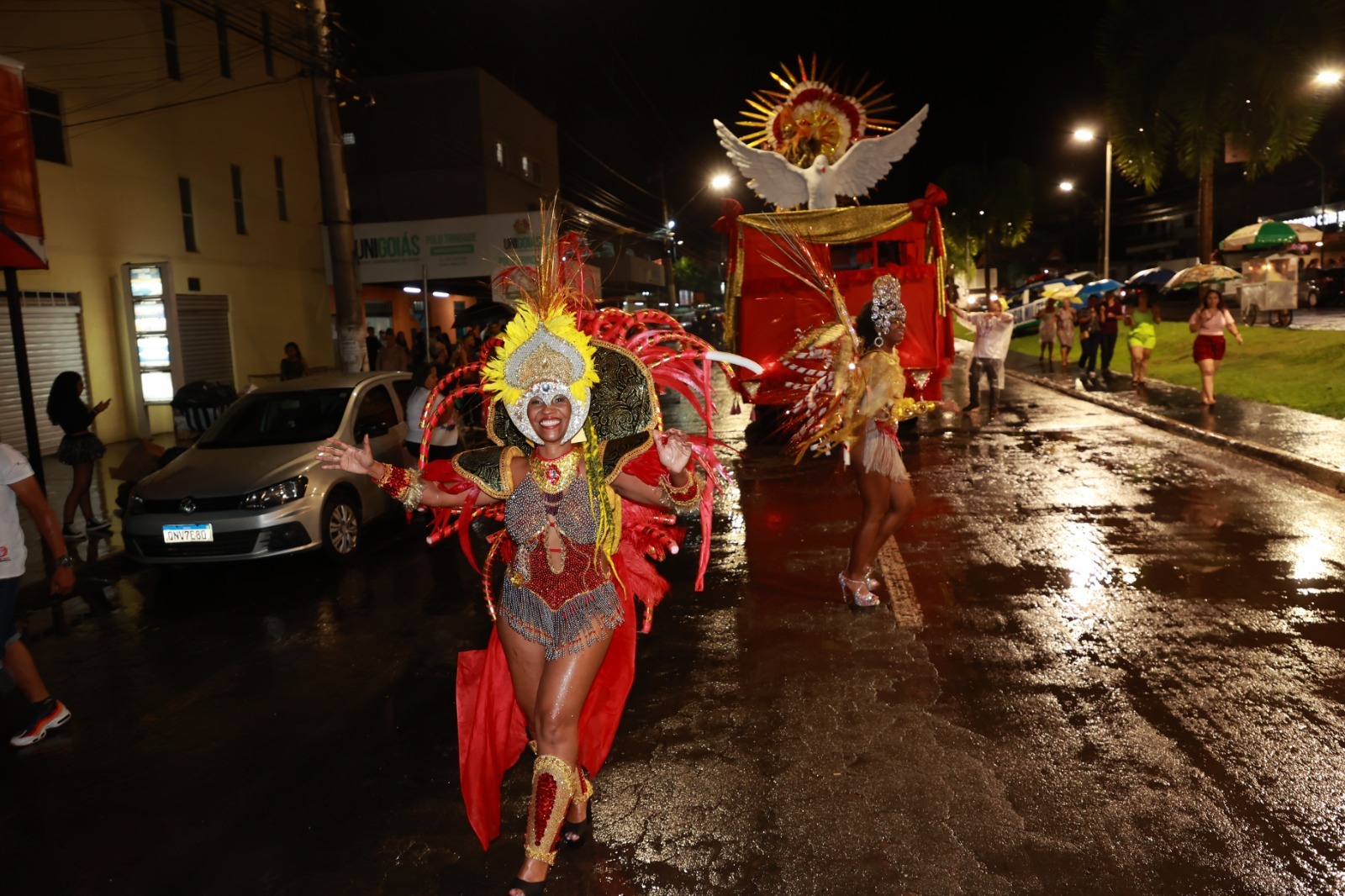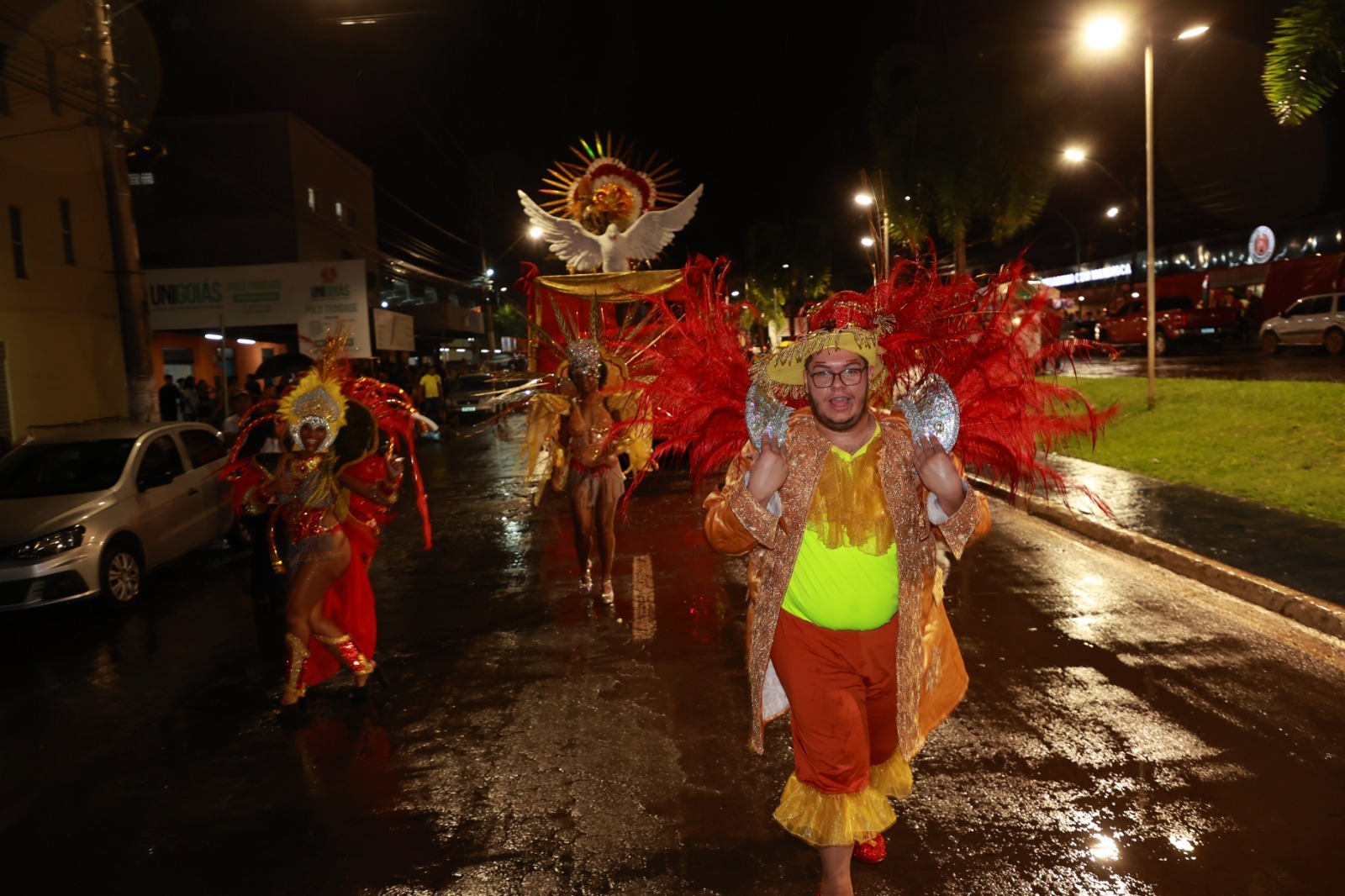 Acadêmcos de Trindade coloriu a Avenida Manoel Monteiro na noite de domingo, levando às ruas o tema “Do nascer ao renascer”. Integrantes da agremiação ignoraram a chuva e desfilaram com alegorias, passistas e fantasias. Apresentação é organizada há 32 anos pelo Grupo de Teatro Desencanto e tem o apoio da Prefeitura de Trindade