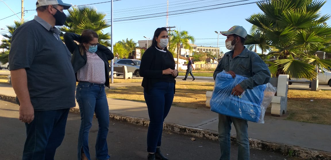 Com a previsão de temperatura mínima abaixo de 10 graus para a madrugada de sexta-feira (30/07), em Trindade, a Prefeitura Municipal, por meio da Secretaria de Assistência Social, redobrou os cuidados com a população vulnerável que vive nas ruas. Cobertores e máscaras faciais foram entregues aos desabrigados no final da tarde desta quinta-feira (29/07).