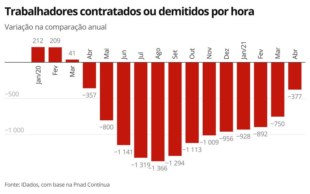 A crise provocada pela pandemia de coronavírus deixou marcas profundas no mercado de trabalho. Em média, 377 brasileiros perderam o emprego por hora em um ano.