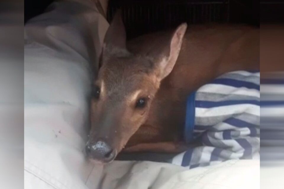 Garota cedeu cobertor para salvar veado atropelado na BR-060