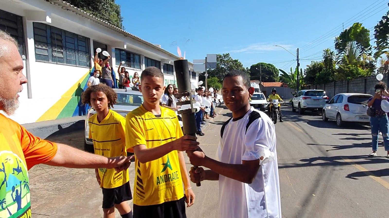 Ele recebeu a tocha olímpica junto com autoridades, na presença de centenas de estudantes de Trindade e de cidades próximas. O prefeito lembrou, com entusiasmo, quando competiu nos jogos na adolescência e estimulou as delegações presentes: “Já disputei, venci e guardo minha medalha até hoje. Valorizem isso”, aconselhou.