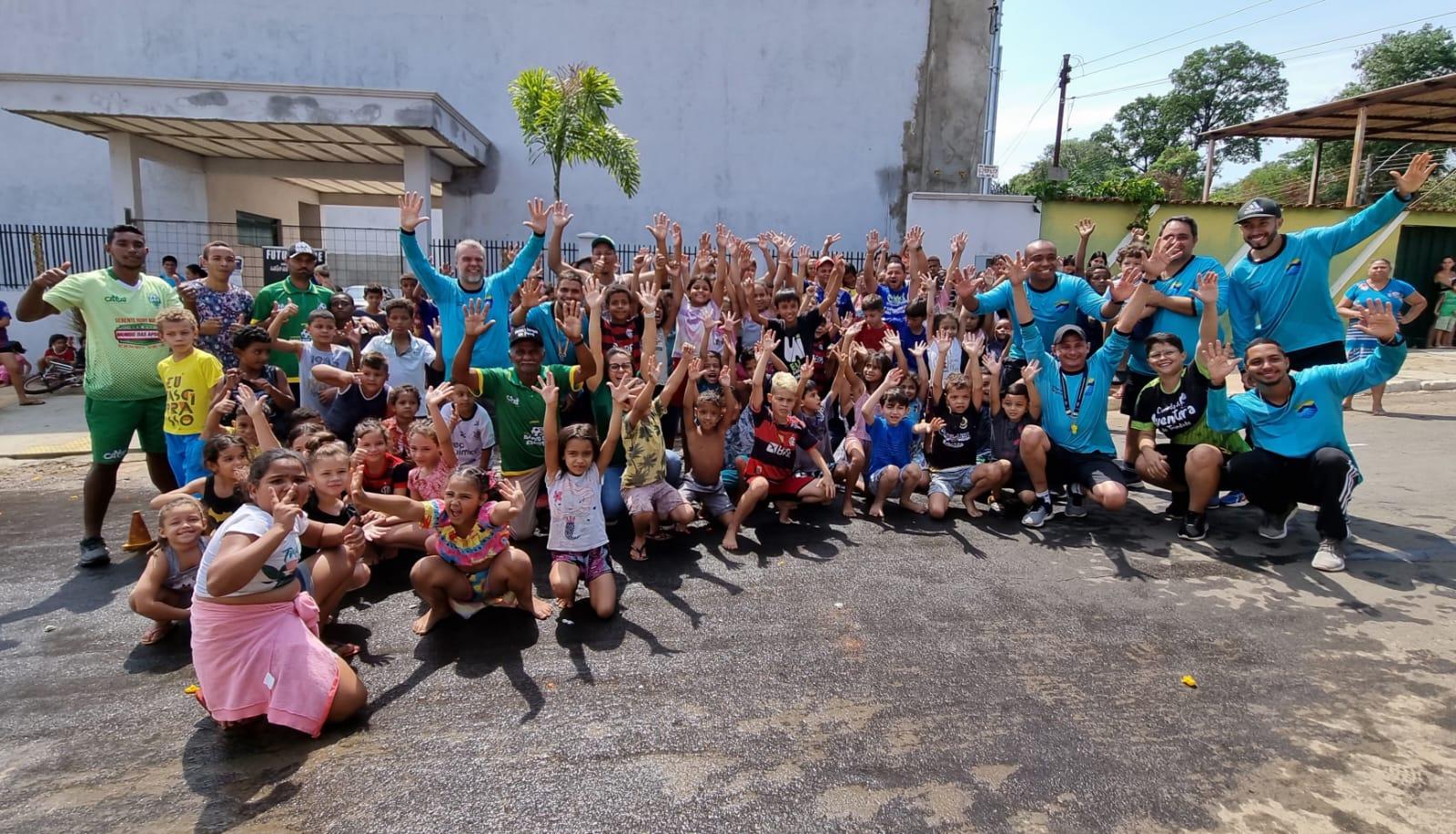Baiano do Esporte festejou com as crianças durante as brincadeiras e ainda doou 100 reais a serem divididos entre ganhadores das baterias de corrida realizadas com as crianças presentes. Ele também incentivou a participação da comunidade durante os outros eventos preparados pela Prefeitura para comemorar o Dia das Crianças.