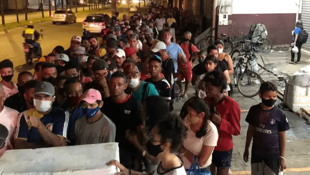 Filas para receber alimentos reúnem mais de 1.500 pessoas em situação de vulnerabilidade | Foto: Reprodução/Associação Tio Cleobaldo