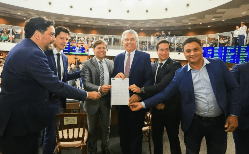 Caiado recebeu das mãos de Bruno Peixoto um cheque simbólico e agradeceu aos parlamentares pelo gesto. “Só se governa em conjunto, não de forma isolada. Assim a gente consegue avançar e evoluir”, afirmou.