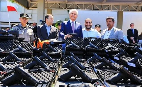 A PM recebeu 12.622 pistolas 9 mm da marca Beretta, 1.150 submetralhadoras 9 mm da marca Sing Sauer, 300 armas de incapacitação neuromuscular do tipo “taser”, 25 lançadores de munições químicas e 300 fuzis calibre 7,62 Beretta. Pela primeira vez, os policiais também vão atuar com espingardas gauge semiautomáticas – foram adquiridas 550 armas. Para a Cavalaria, o Estado entregou um caminhão próprio para o transporte de equinos e 50 conjuntos de sela.