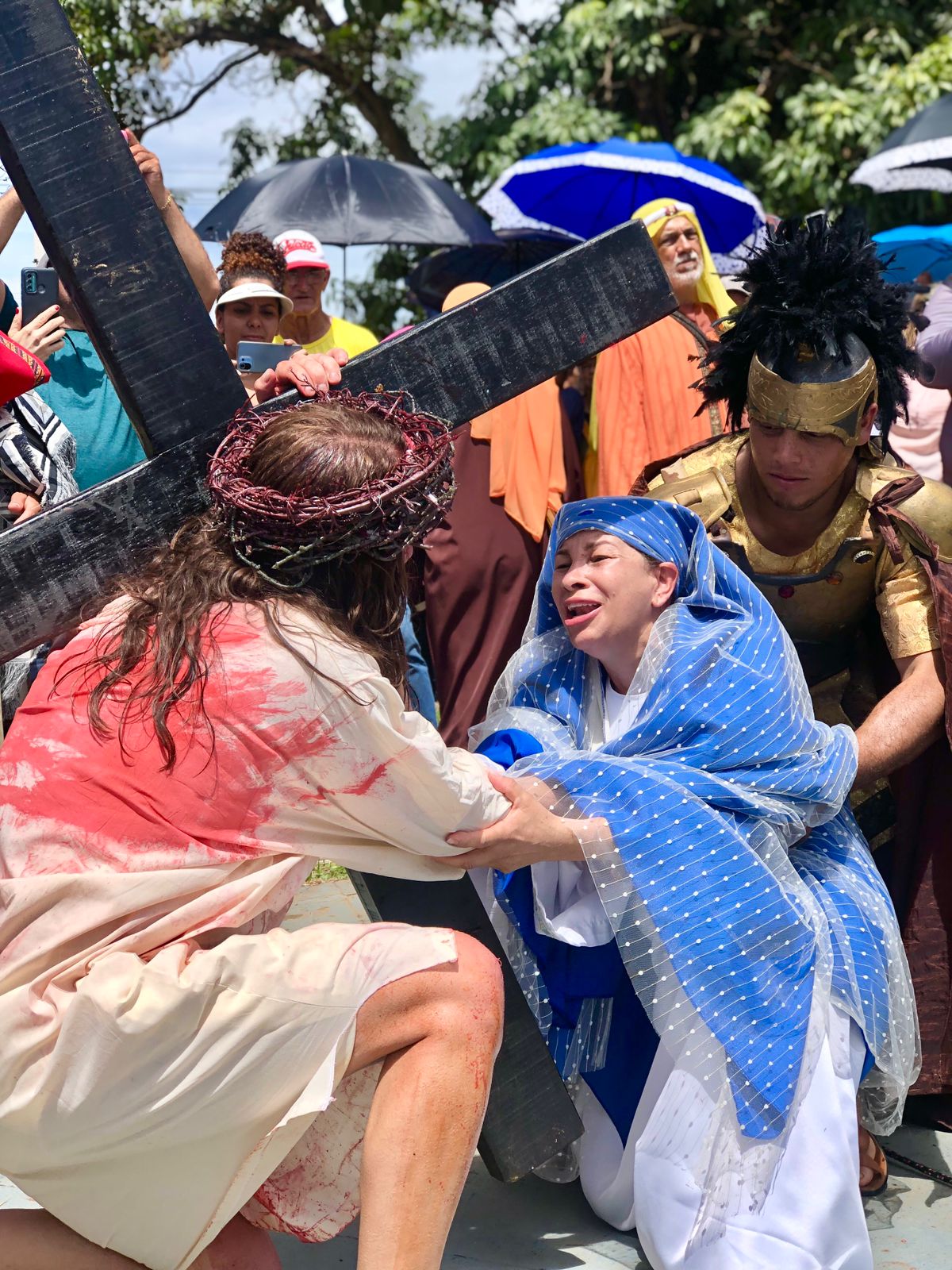No início da apresentação, uma chuva intensa não impediu que a multidão de atores e a organização se colocassem a postos nas estações. Por volta das 7h eles iniciaram as encenações que só terminariam por volta das 13h30, nos últimos painéis da Via Sacra.