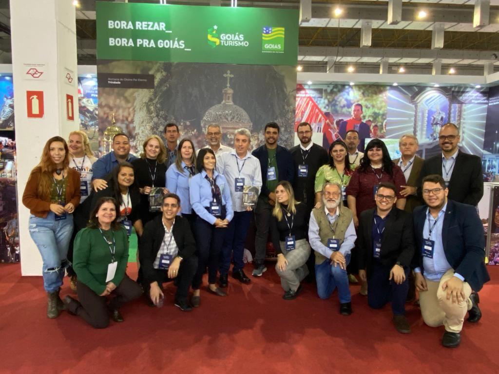 “Vamos realizar, este ano, com muita fé em Deus, a maior festa da nossa história, a mais organizada e segura”, afirma prefeito durante evento. Prefeitura faz exposição do livro Trindade-Turismo e da réplica do Medalhão do Divino Pai Eterno em stand de Goiás no evento. Secretários Warley Lopes e Gustavo Queiróz realizam contatos com visitantes e distribuidoras de artigos religiosos para fortalecer comerciantes do município