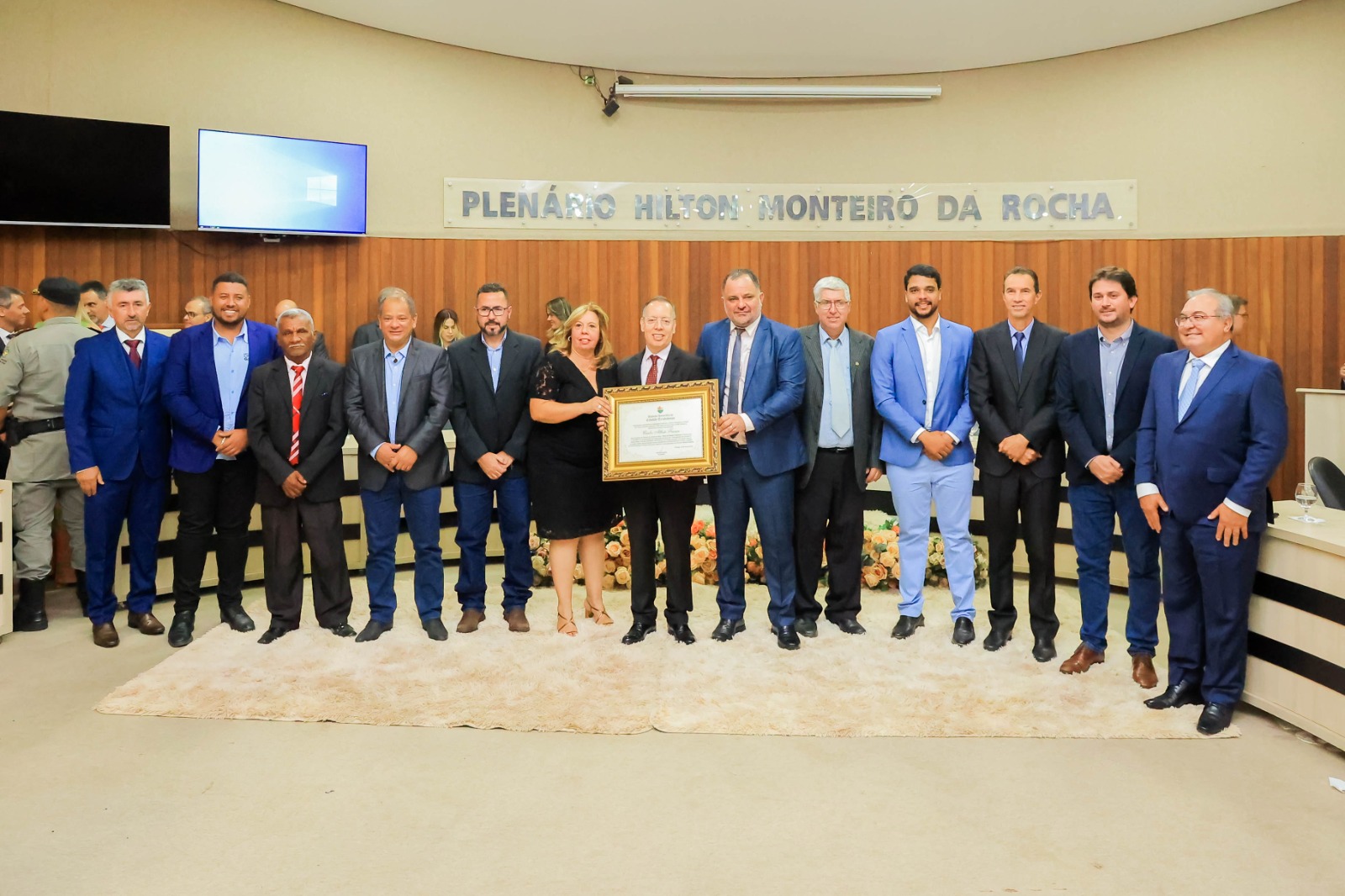 O prefeito Marden Júnior participou, nesta terça-feira (23/05), da sessão solene na Câmara Municipal marcada para entrega do título de cidadão trindadense ao presidente do Tribunal de Justiça de Goiás, desembargador Carlos Alberto França.