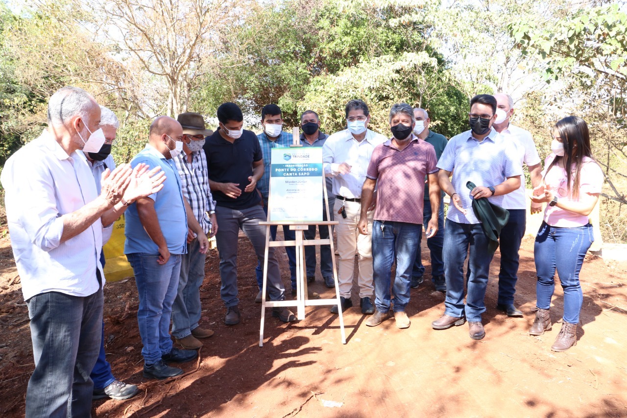 Nas celebrações dos 101 anos de Trindade, o prefeito Marden Júnior inaugurou, nesta quinta-feira (12/08), duas pontes na região do Arrozal e povoado do Bugre. As estruturas ficam próximas, sobre os córregos Bruaca e Canta Sapo. Ambas são imprescindíveis para produtores rurais da região, onde existem culturas de sementes, pecuária de leite e corte.