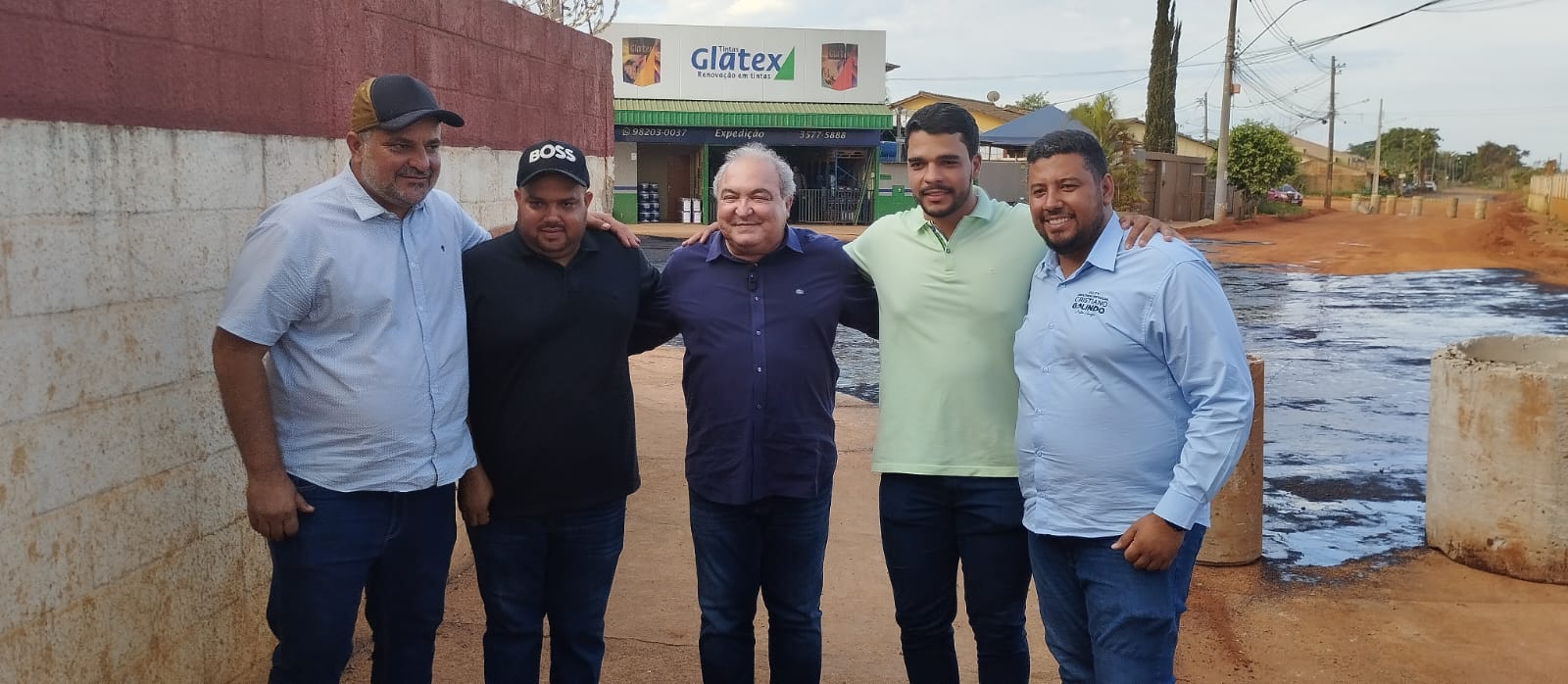 O prefeito estava acompanhado do deputado estadual Cristiano Galindo, do ex-prefeito Jânio Darrot, do secretário de infraestrutura Wesley Cabeção, do secretário de comunicação Frank Fraga e o secretário Johnatan Reis.