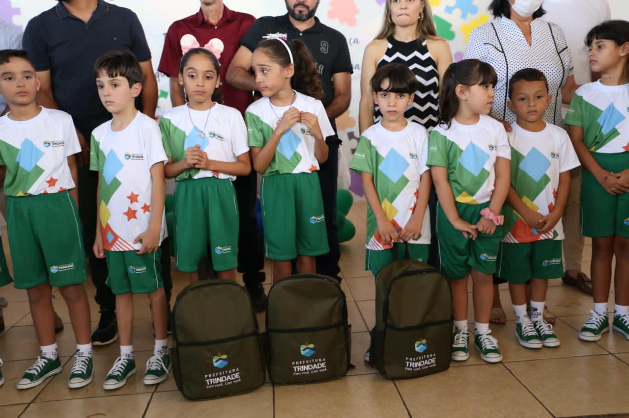 A Prefeitura de Trindade começou nesta segunda-feira (23/05) a entregar os conjuntos de uniformes com calçados, e os kits escolares dos alunos matriculados na Rede Municipal de Ensino em 2022. O prefeito Marden Júnior esteve em quatro unidades acompanhado do secretário municipal de Educação, Sérgio Sanches, e várias autoridades municipais, com a presença de pais e alunos.