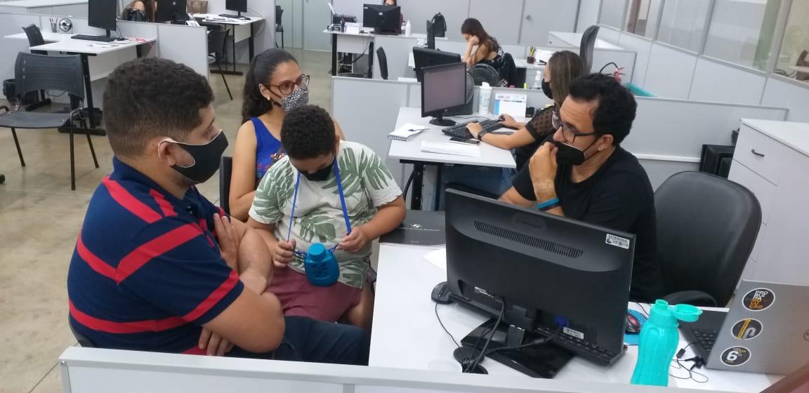Consultor Marcos Humberto e a família do microempresário Hígor Aires