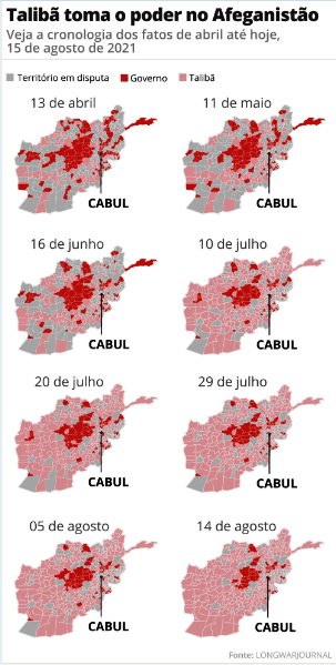 O Talibã avançou rapidamente depois de que a maior parte das forças lideradas pelos Estados Unidos deixaram o país em julho, e a queda de Cabul ocorre antes do previsto pelas autoridades norte-americanas.