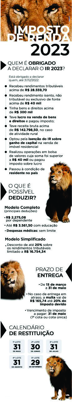 O prazo de entrega do IR 2023 termina no dia 31 de maio.