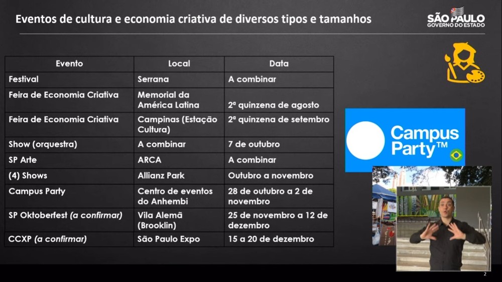 A apresentação na cidade faz parte de um projeto para realização de 30 “eventos modelo” no estado, sendo 14 eventos sociais; 12 de economia criativa; dois esportivos e dois de negócios. Além de Serrana, há programações para Campinas (SP) e a capital paulista.