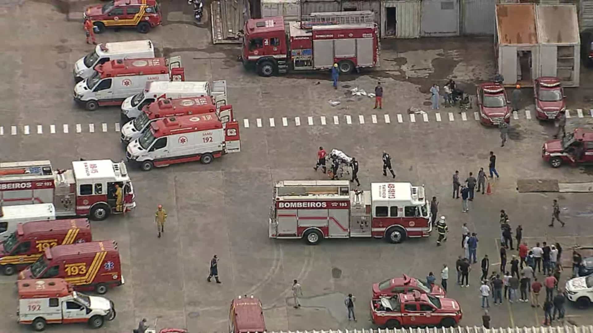 Ao menos 20 viaturas e 79 bombeiros foram enviadas ao local, além de agentes da Defesa Civil, da Polícia Militar e do Serviço de Atendimento Móvel de Urgência (Samu).