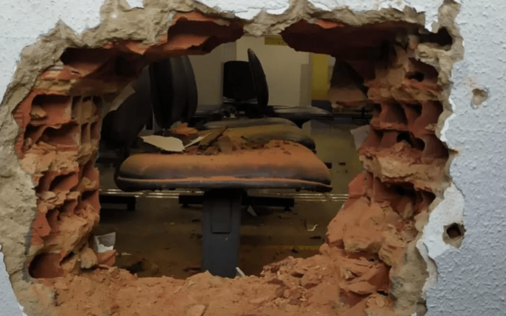 De acordo com a corporação, um funcionário da instituição financeira acionou a polícia após verificar que a câmera de segurança do banco oscilava. Enquanto os agentes de Itapirapuã se deslocavam para o local, o servidor ligou novamente e informou que viu pelo equipamentos dois indivíduos encapuzados dente da unidade bancária.
